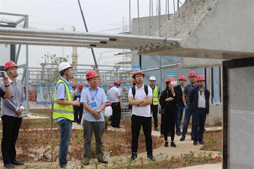 交流會(huì)上,項(xiàng)目技術(shù)總監(jiān)楊曉毅分享了《基于BIM技術(shù)的特大型多方協(xié)作智慧建造管理》,對(duì)項(xiàng)目智慧工地驅(qū)動(dòng)工程施工現(xiàn)場(chǎng)管理升級(jí)進(jìn)行了成果展示交流。隨后,觀摩團(tuán)隊(duì)乘坐大巴參觀了項(xiàng)目的主要施工區(qū)域,在項(xiàng)目管理人員的隨行講解下現(xiàn)場(chǎng)觀摩了世界領(lǐng)先的智慧工地、裝配式鋼結(jié)構(gòu)建筑、安全文明標(biāo)準(zhǔn)化工地、先進(jìn)工藝工法等,并通過(guò)現(xiàn)場(chǎng)二維碼掃碼查看項(xiàng)目施工現(xiàn)場(chǎng)、辦公生活區(qū)及配套設(shè)施等720°全景,體驗(yàn)身臨其境的視野,全面深度了解項(xiàng)目建設(shè)。